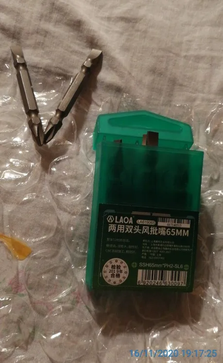 Товар пришел не тот. Напутали китайцы на складе. Просил продавца повторно выслать. А он решил вернуть деньги. Открыл спор. Деньги вернули. Очень жаль. Не стал запариваться. У него покупал кусачки. Качество LAOA понравилось. Наверно и биты отличные. Жаль только, что не срослось. Товар рекомендую. Не ведитесь на распродажи. От них только один сплошной почтовый коллапс и нервотрепка.