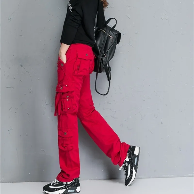 Брюки-Багги женские с несколькими карманами, свободные прямые армейские штаны, уличные походные брюки-карго в стиле милитари для скалолазания, большие размеры