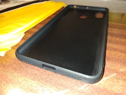 По сравнению с прошлым кейсом для Xiaomi Redmi Note5, этот кейс имеет меньшие борта по краям, особенно в заклугленной части углов. Так что при падении может и не помочь. Телефон в этом кейсе смотреться меньше, и по тактильным ощущениям это подтверждается. Не скользкий, но маркий, пыль на нем хорошо держится из-за пористой структуры.