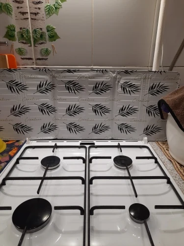 Одну комфорку закрывает отлично, на две уже с трудом, то есть картинки не совсем достоверны. Плотная, чёткий рисунок. Доставка полтора месяца в Москву, думала вообще не придёт. За это деньги хорошо, всё равно на новой кухне хочется огородить место жарки)