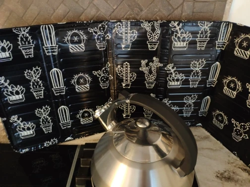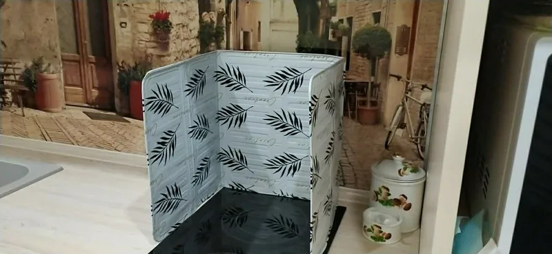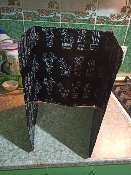 Заказываю второй раз. Ставлю вдоль стенки , где плита во время готовки. Очень спасает от брызг, особенно когда жаришь что-то на сильном огне. Сама шторка не очень крепкая, но это фольга, что то ждать от нее не приходится. На год хватит.
