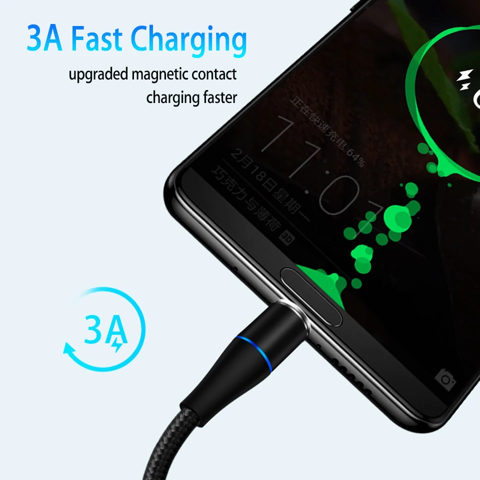 Магнитный кабель Micro Usb Type-C, 3 А, быстрая зарядка, Магнитный зарядный кабель для Oppo Reno One Plus 7 Pro Samsung A7 A8 A9 Cabo Tipe C