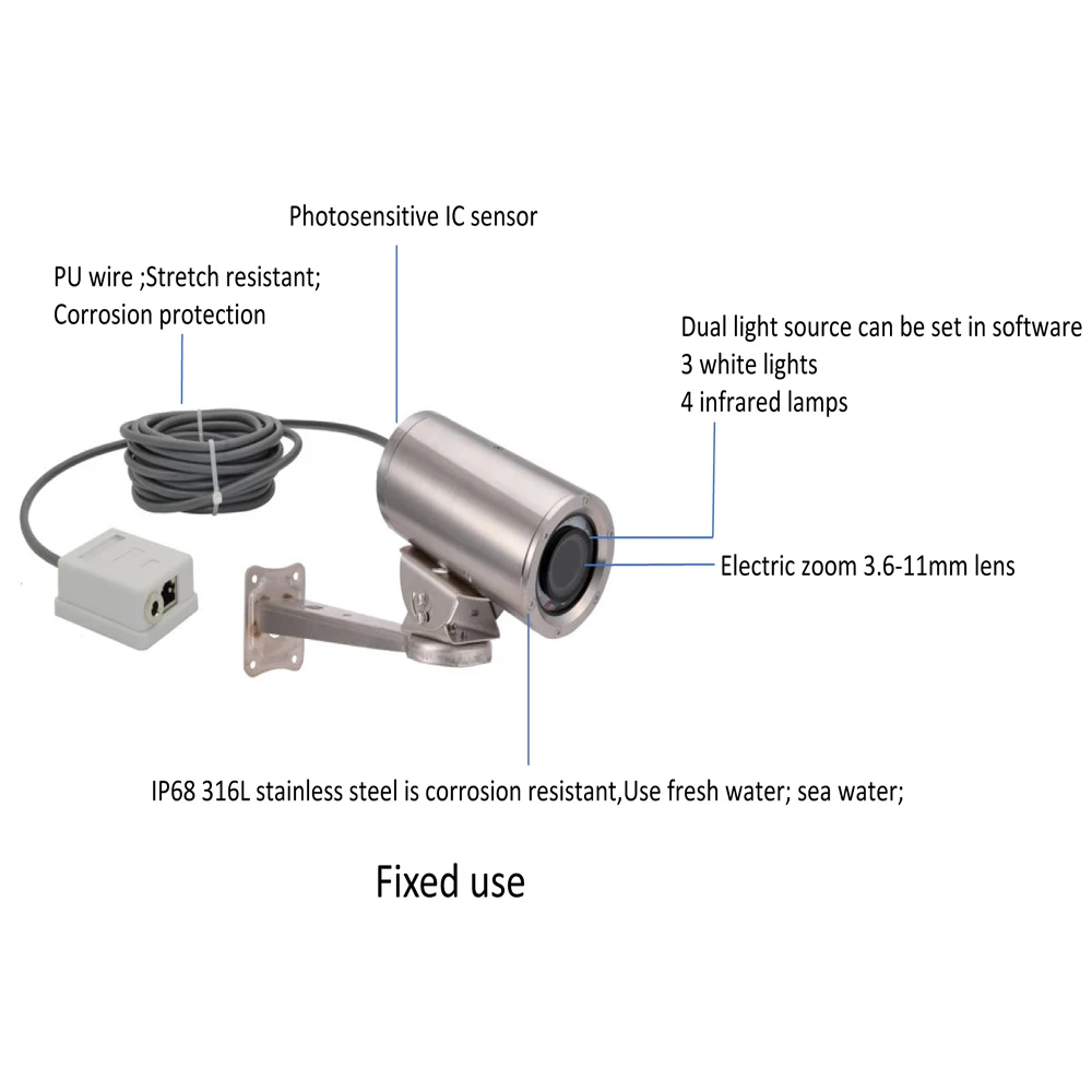 Подводная сетевая IP-камера 1080P с питанием по Ethernet из нержавеющей стали, удаленная Регулировка WANLAN, Электрический зум-объектив и интеллектуальная Регулировка светильник