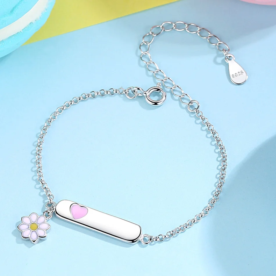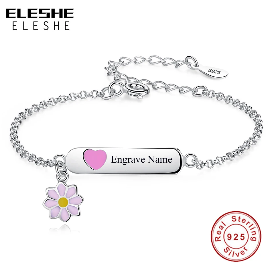 ELESHE по индивидуальному заказу для маленьких девочек браслет 925 стерлингового серебра Выгравировано Название эмалью с изображением подсолнуха сердце Шарм Браслеты Для Детский подарок