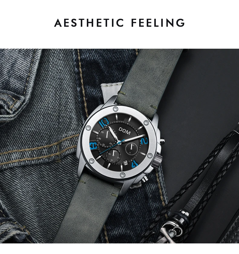 Роскошные мужские часы DOM, мужские водонепроницаемые часы с датой,...