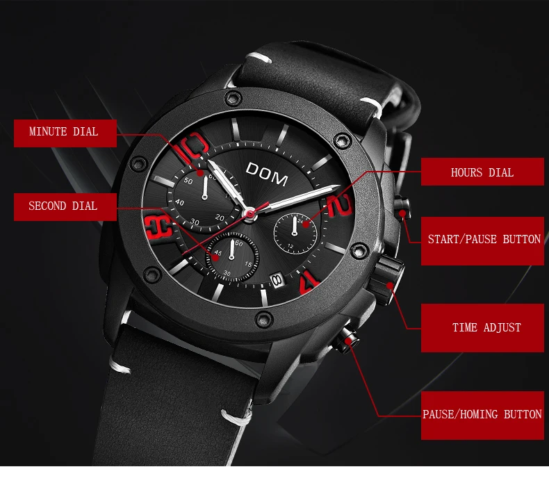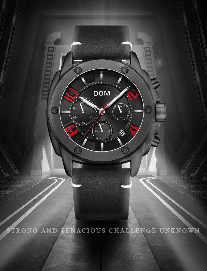Мужские спортивные часы DOM, Роскошные Кварцевые часы с хронографом...