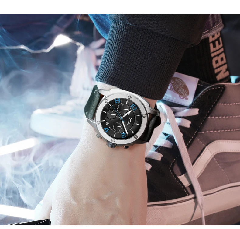 Часы DOM мужские, стильные, креативные, кожаные, кварцевые, водонеп...