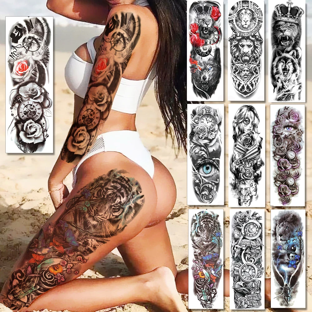 Сексуальные, длинные, на полную руку, розовые часы, временные татуировки для мужчин, женщин, мужчин, татуировки, искусство тела, ног, макияж, большой тигровый цветок, поддельные татуировки, наклейки
