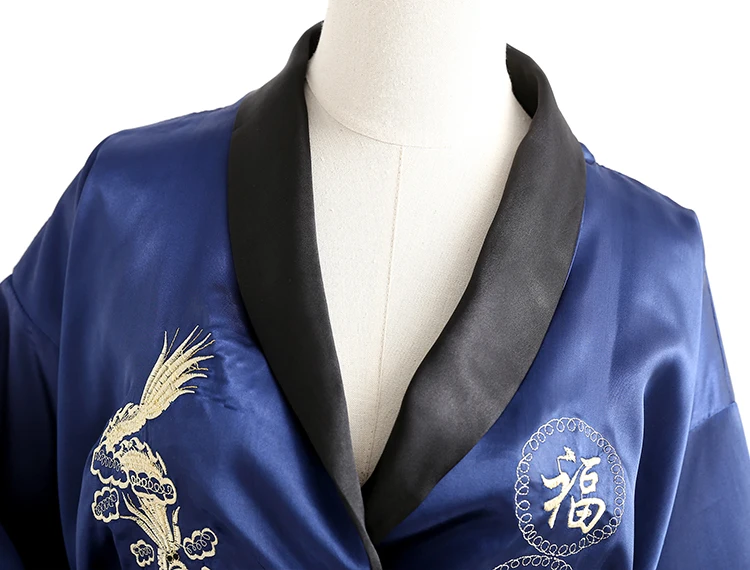 Женское двустороннее кимоно, юката с атласной вышивкой, одного размера, двухсторонняя одежда для сна, черный и красный цвета