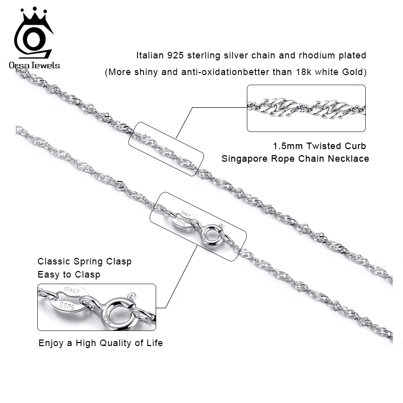 ORSA JEWELS Настоящее серебро 925 пробы, ожерелья для женщин и мужчин, цепочка 45 см, длинные серебряные ювелирные изделия, оптовая продажа, подарок, OSC02