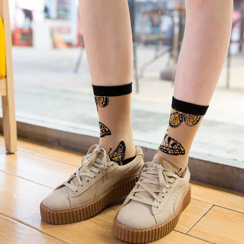 Носки женские COSPLACOOL, в Корейском стиле, хипстерские, жаккардовые, с цветочным принтом