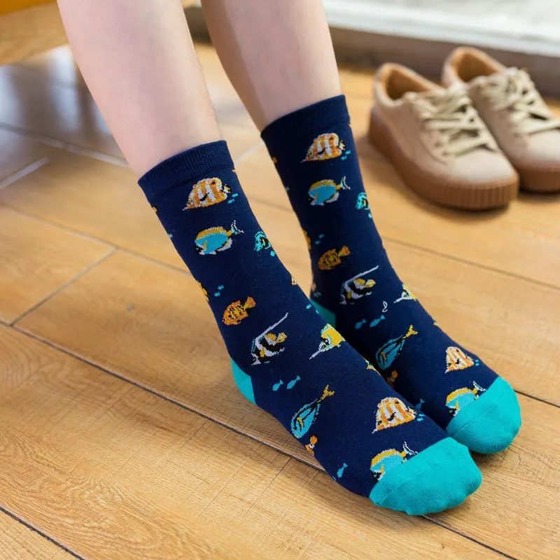Женские носки в Корейском стиле [COSPLACOOL]Harajuku, Веселые носки с русалкой, хипстерские жаккардовые носки с цветочным принтом, Meias Feminino, японские носки