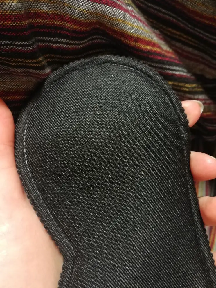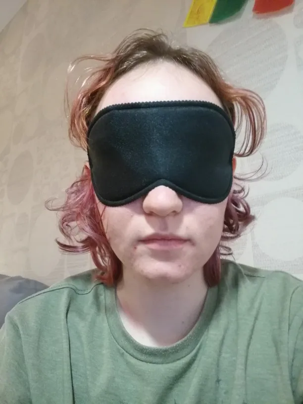 отличная вещь. ничего лишнего. ткань простая, со стороны лица помягче, снаружи погрубее. изделие выполняет свое предназначение. все что нужно для маски для глаз. фото полностью соответствует. в следующий раз закажу себе таких побольше