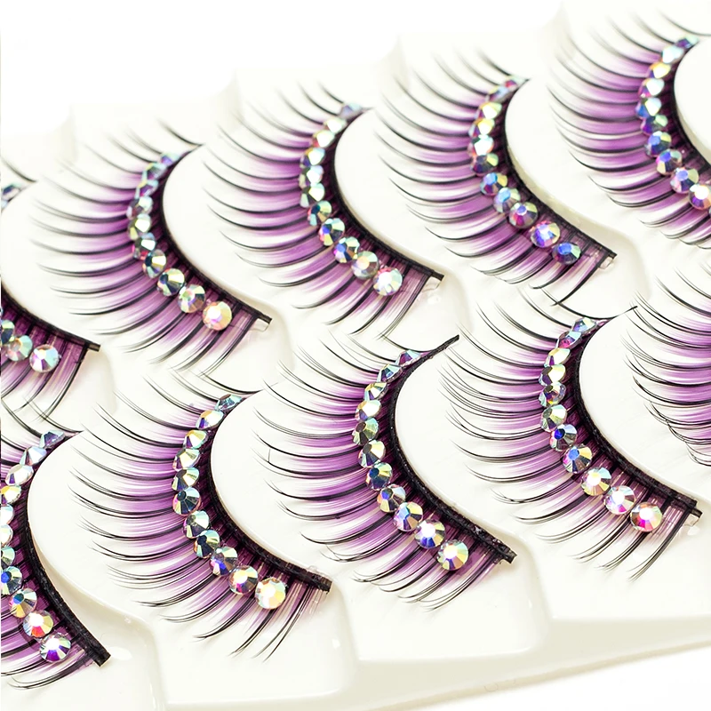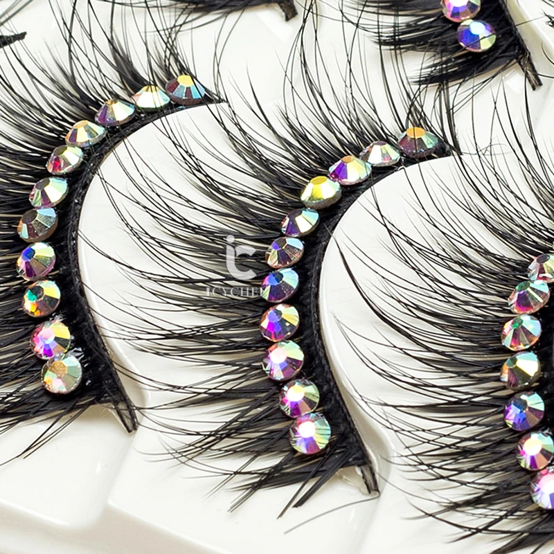 Косметика ICYCHEER 5 пар цветных блестящих ресницы с бриллиантами накладные ресницы вечерние косплея Хэллоуина длинные густые натуральные танцевальные ресницы