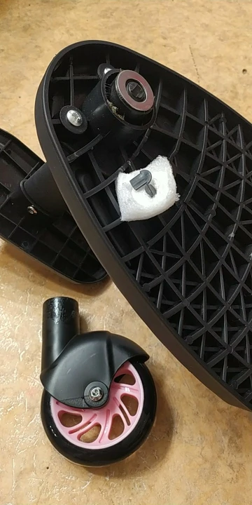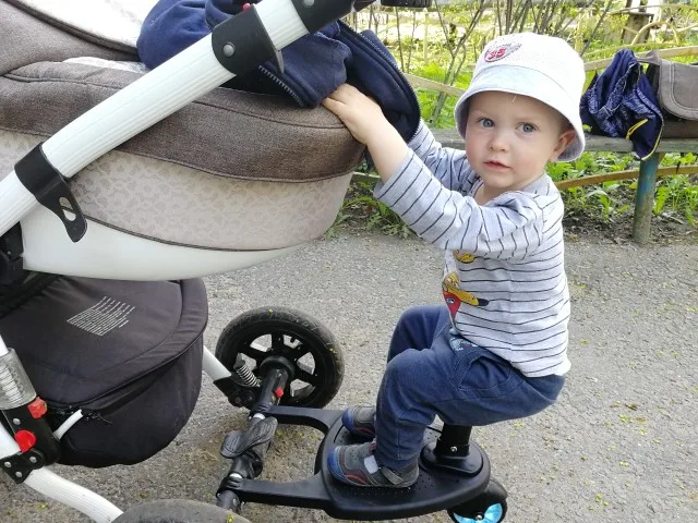 Доставили за 2 недели. Всё целое. На Adamex Barletta New подошло. Трехлетнего ребенка выдерживает. Вперёд едет отлично, если попытаться поехать назад, колесо встает боком, подгибается и не едет. Чтобы всё таки поехало, нужно немного приподнять подножку и тогда колесо разворачивается нормально. В целом, за свою цену я довольна покупкой