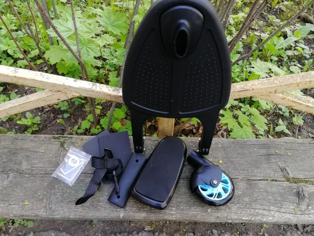 Подставка пришла быстро, но к сожалению со сломанной деталью из за которой крепление колеса было невозможным. Но без проблем отправила обратно и деньги вернули. Так же хочу, что б обратили внимание покупатели на то, что подставка достаточно хлипкая и для тяжёлых детей вряд-ли подойдёт. Старшей дочке хоть и 3 года, но весит она 20кг и примерив стало понятно, что было бы очень не надёжно ее там возить. Поэтому я даже была рада, что подставка пришла с поломкой и ее в итоге вернули. Так как мы бы ей не пользовались. Муж решил сам сколотить подставку Если интересно, что в итоге мы сделаем, то заглядывайте на Дзен-канал Drujkalena. Там хочу выложить процесс как делали и что в итоге получилось