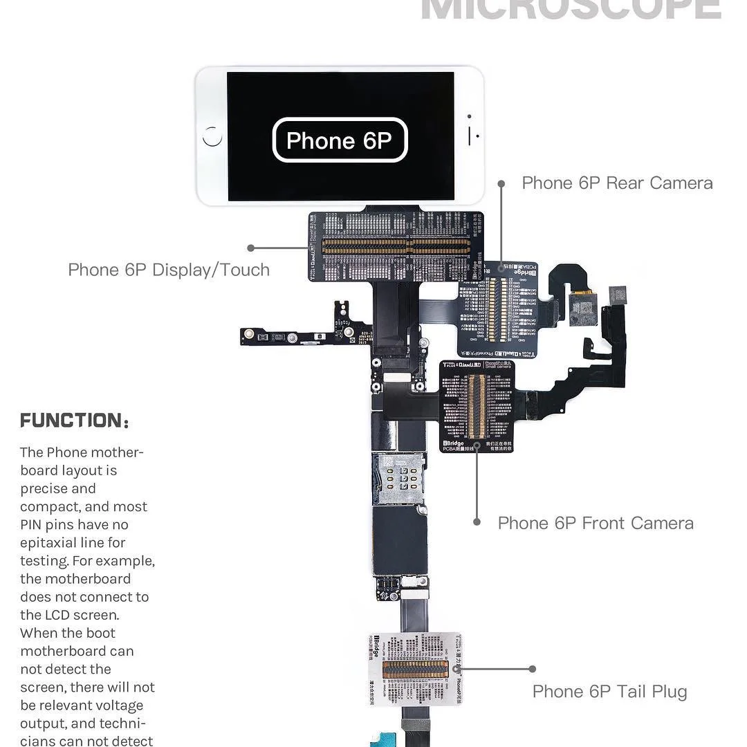 Особенности:Расположение платы телефона является точным и компактным, и большинство контактов не имеют эпитаксиальной линии тестирования. Например, плата не подключается к ЖК-экрану. Когда плата загрузки не может обнаружить экран, не будет соответствующего выходного напряжения, и техники не могут обнаружить и проверить значение напряжения соответствующей цепи.Этот тест cabel для iphone 6/6p/6s/6sp/7/7p/8g/8p/x, каждая модель имеет 4 типа тестового кабеля, как: задняя камера, фронтальная камера, док-станция и кабель с сенсорным экраном.