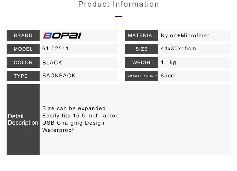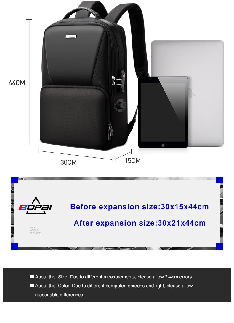 Водонепроницаемый рюкзак BOPAI, черный рюкзак с отделением для ноутбука 15,6 дюйма