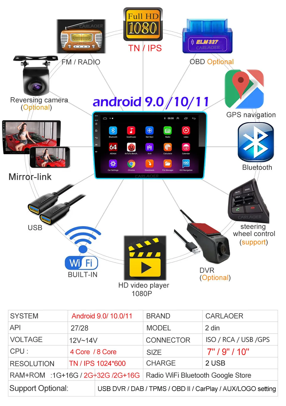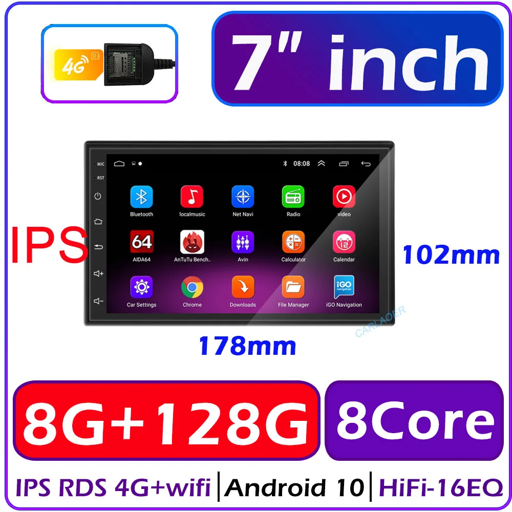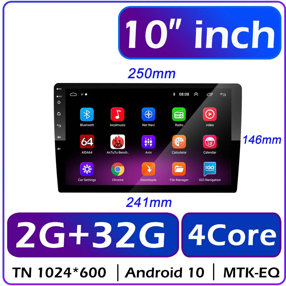 Автомобильный мультимедийный плеер, автомагнитола 2 din на Android, с 7, 9, 10 "экраном, GPS, Wi-Fi, Bluetooth, для Toyota, Volkswagen, Hyundai, Kia, Nissan, Honda, Lada
