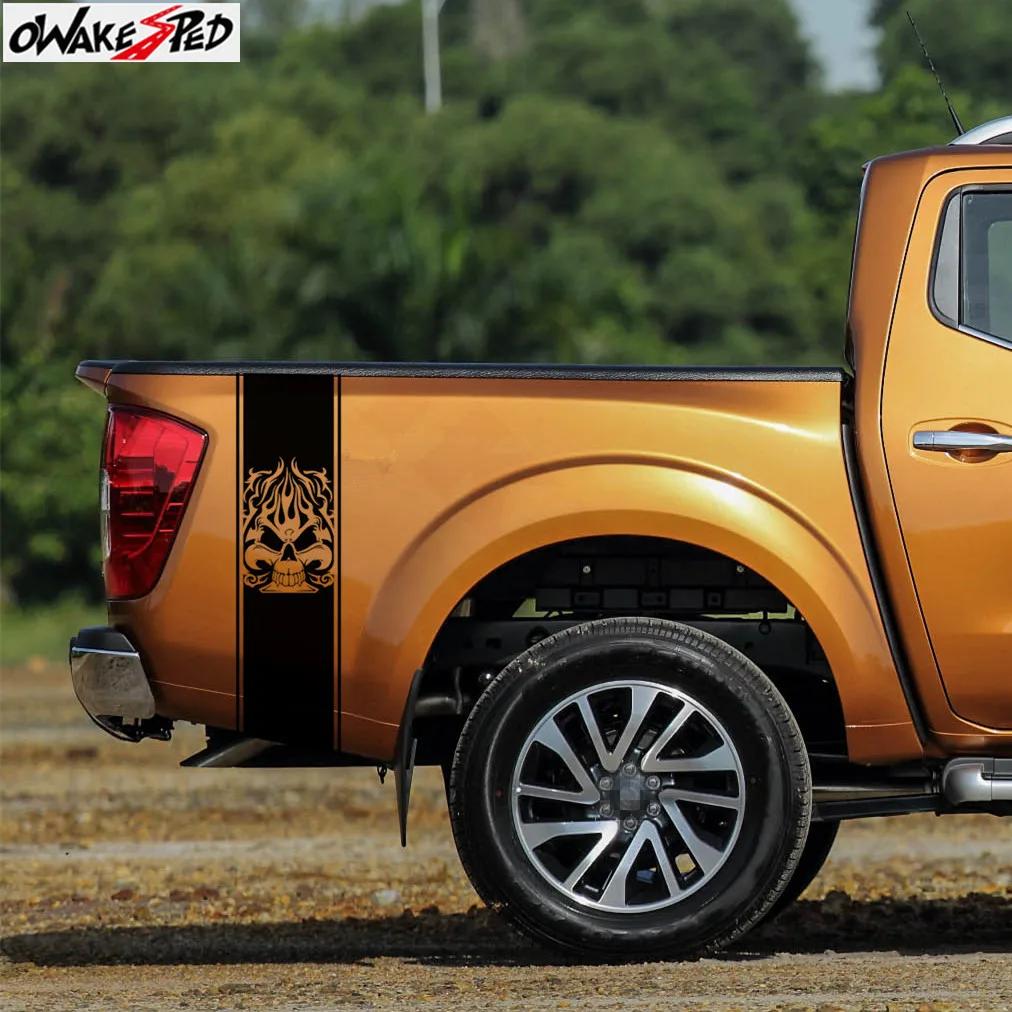 Набор наклеек в виде черепа, 2 шт., полосы для пикапа, грузовика, кровати, Стайлинг, Декор, наклейка, автомобильный корпус, двусторонние аксессуары, наклейка s