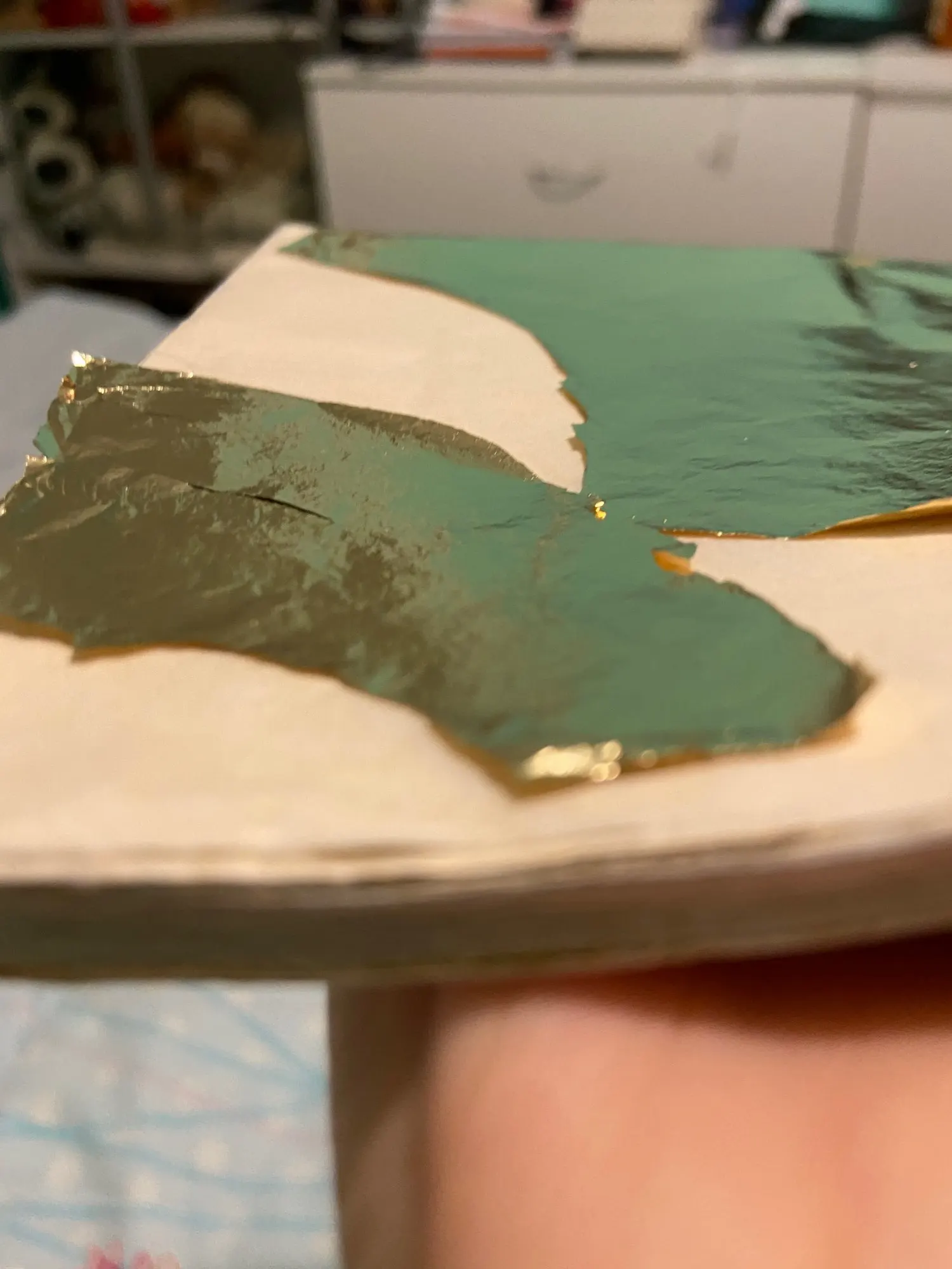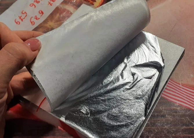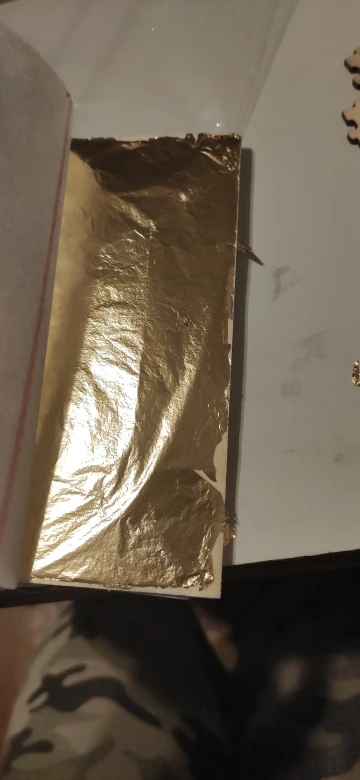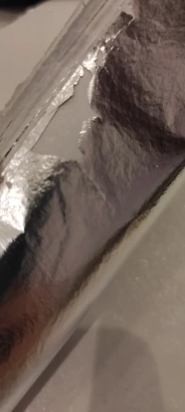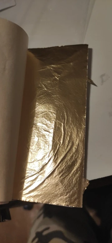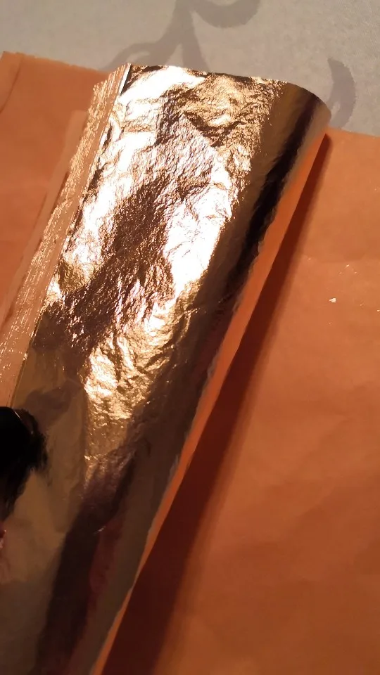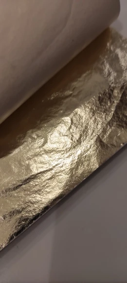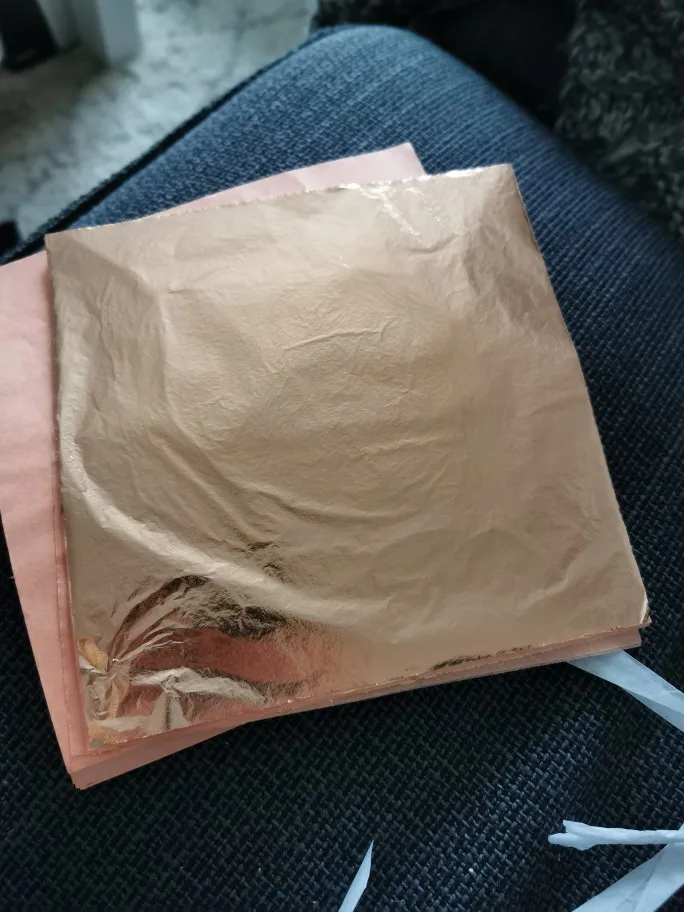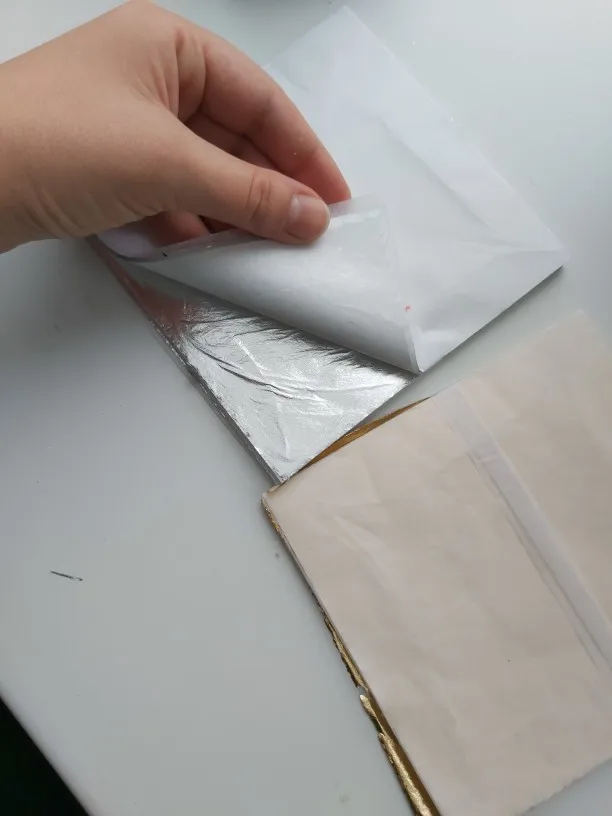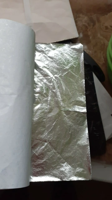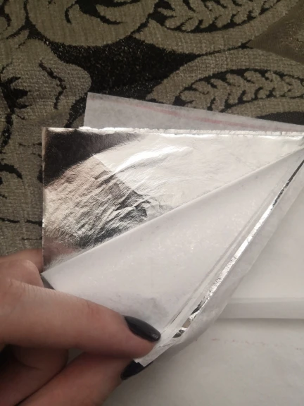 Количество листов не пересчитывала, но пачка не такая толстая, как на фото магазина. Цвет хороший, окислений не заметила, но вот бумажная подложка по размерам ровно под лист, из-за чего края крайних листов сильно потрепаны :( но, я в работе с поталью новичок, поэтому мне сгодится)