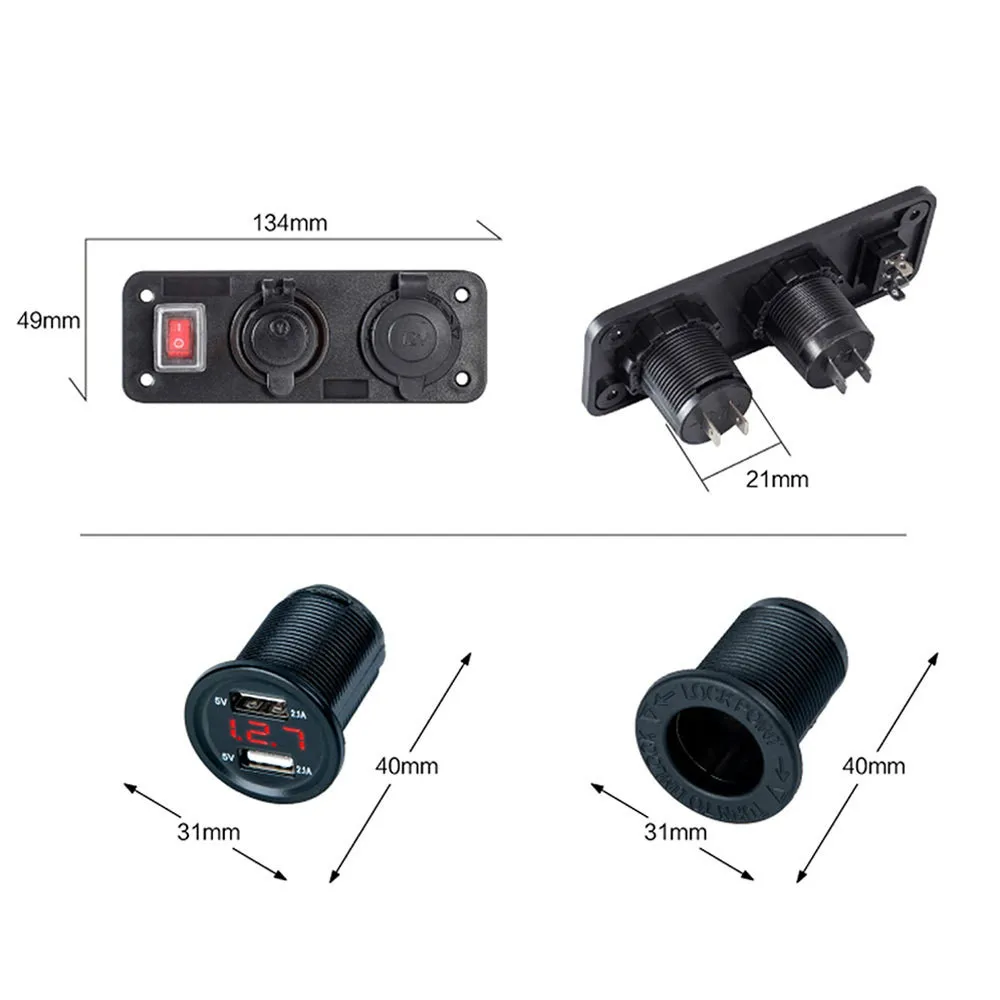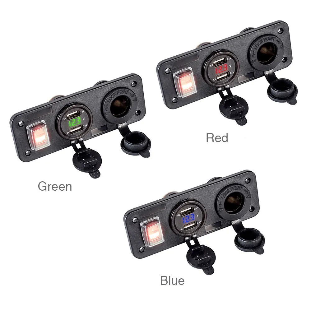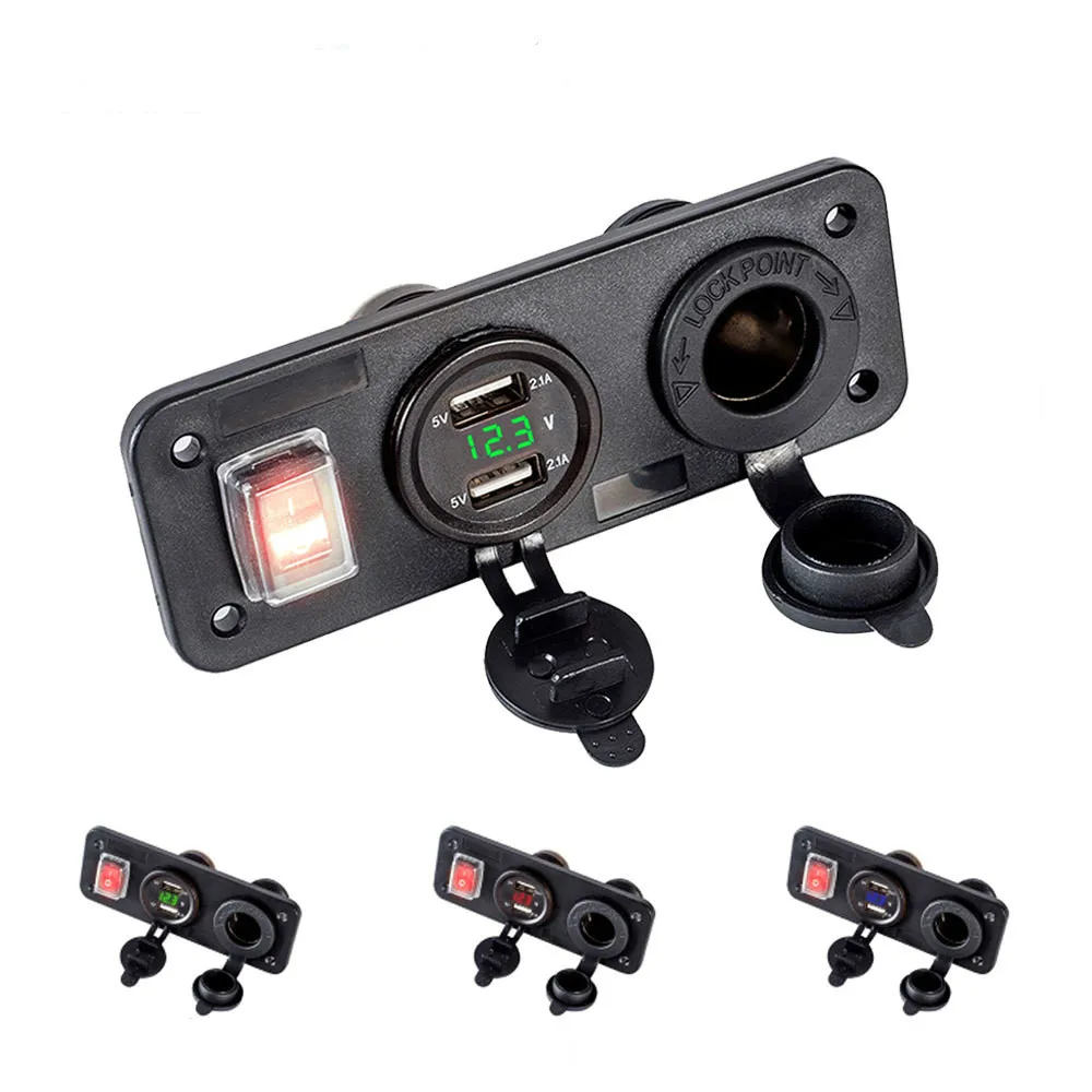 Двойное зарядное устройство USB, 4.2A вольтметр 12 В, гнездо прикуривателя, вкл. ВЫКЛ., рокер, тумблер, панель переключателя для автомобиля, лодки, грузовика