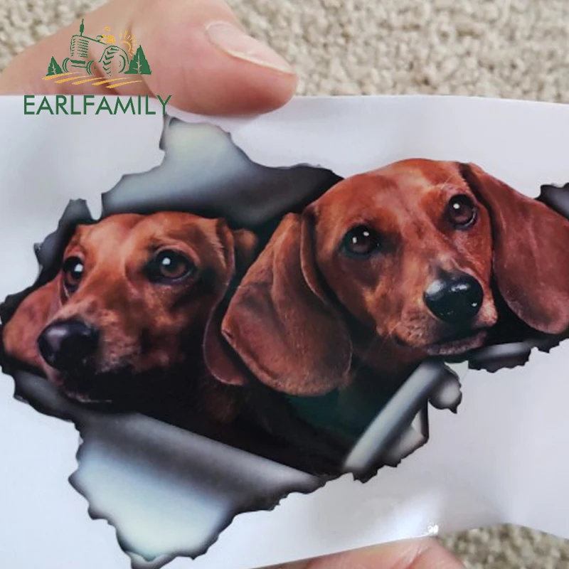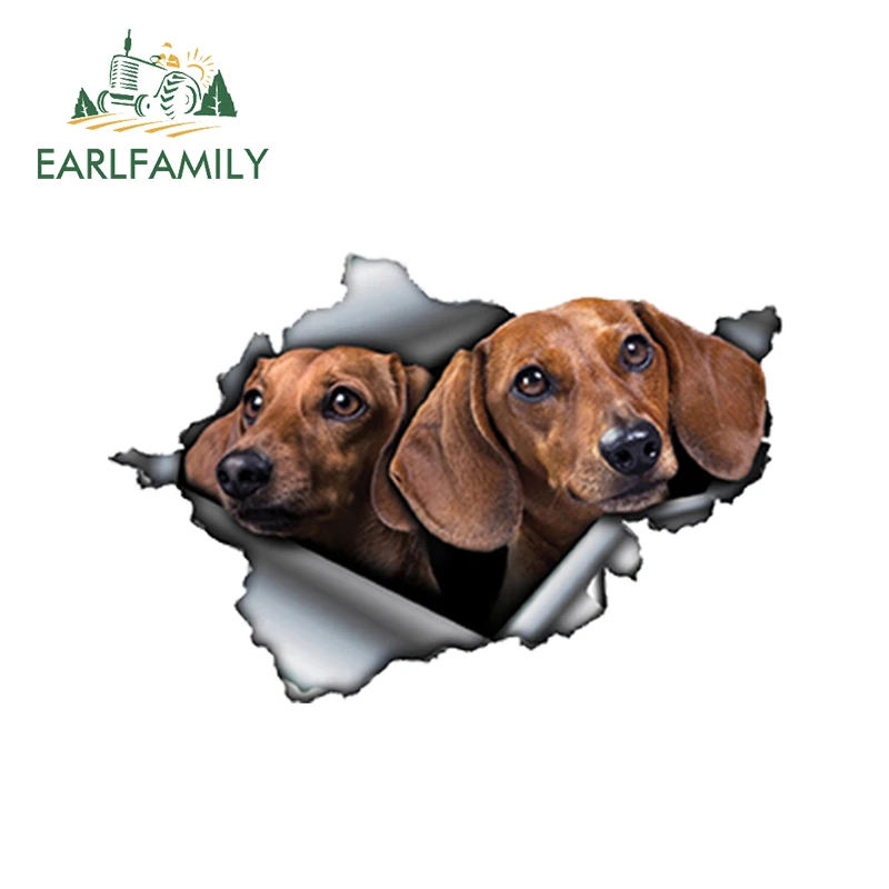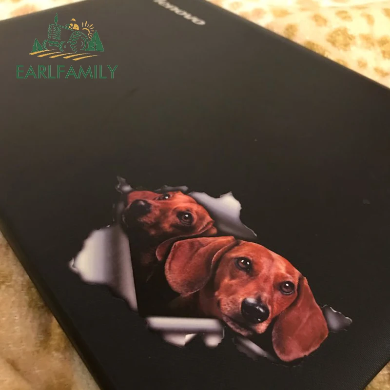 EARLFAMILY 13 см x 8,6 см, 3D желтовато-коричневая такса, автомобильная наклейка, рваная металлическая наклейка, Светоотражающая наклейка s, водонепроницаемые Стильные наклейки для домашних животных, собак