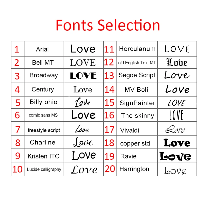 --- Выберите цвет и добавьте его в корзину.--- Выберите шрифт и символы--- Оставьте серийный номер шрифта и символов и текст, который вы хотите выгравировать в разделе «примечания продавцу» или свяжитесь с продавцом напрямую.