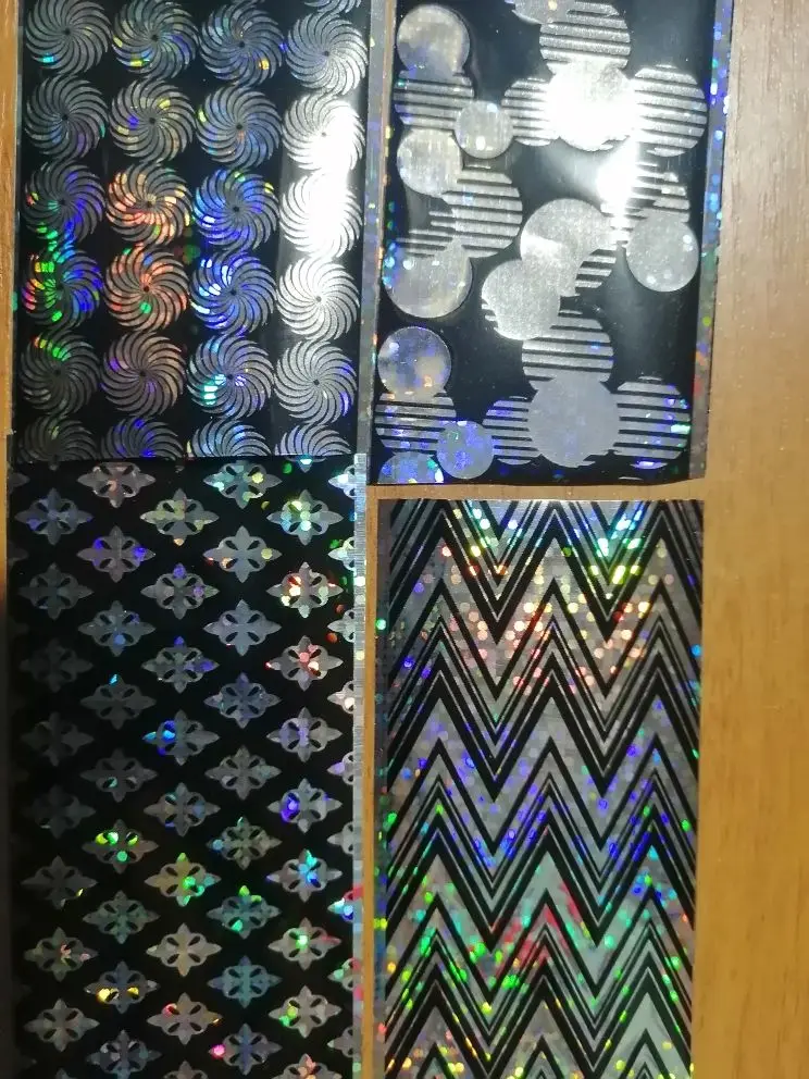 неплохая фольга, черная и прозрачная огнище вообще. Омбре вообще ниочем, как будто вода попала и потекла но в общем норм за такие-то деньги.