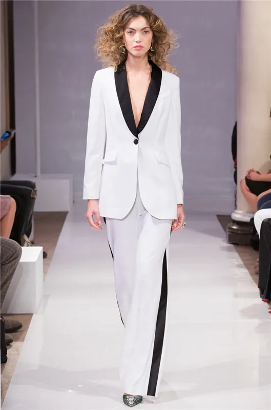 Белый женский брючный костюм, женский модный костюм с длинным рукавом, Женский индивидуальный воротник
