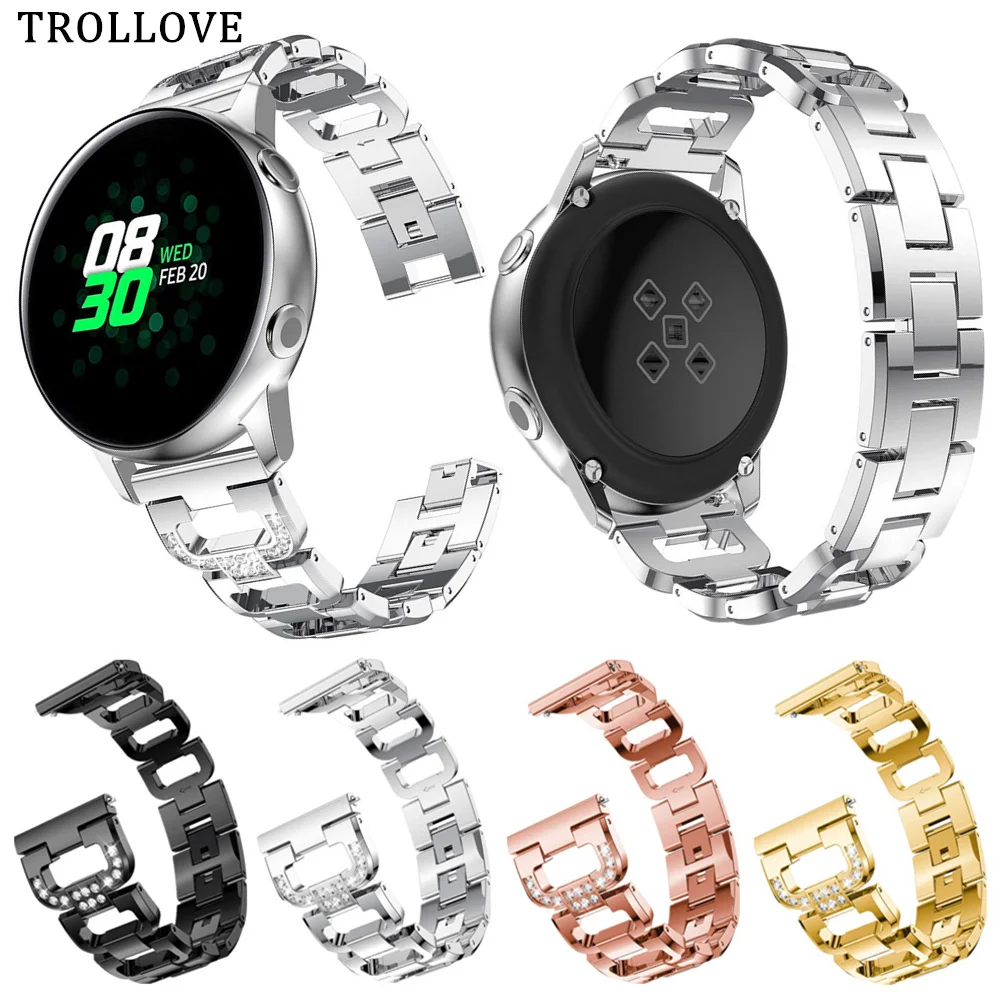 Ремешок из нержавеющей стали для Samsung Galaxy Watch Active, браслет со стразами для часов Gear Classic Sport S2 S3, 42 мм 46 мм, 22 мм 20 мм