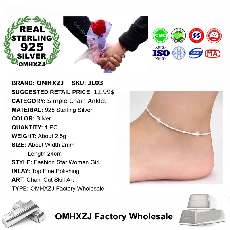 Женский ножной браслет OMHXZJ, из серебра 925 пробы с цепочкой на запястье