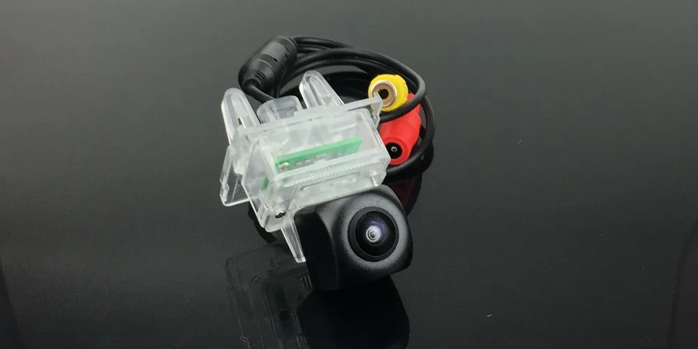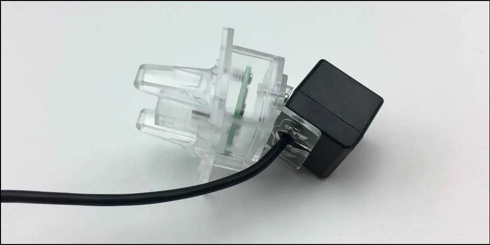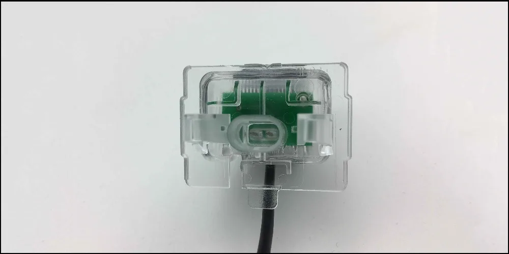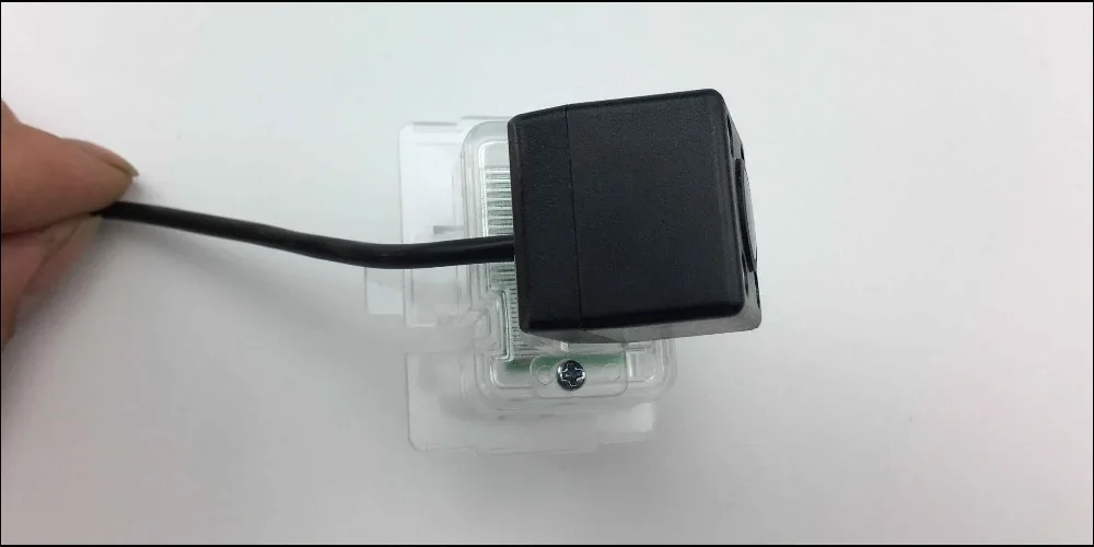 . Прикрепите камеру к стандартному светильник ному знаку.. Подключите встроенный светильник номерного знака камеры к тому месту, где был подключен штатный светильник номерного знака, чтобы получить питание. Подключите питание камеры к стоп-сигналам-красный провод к положительному, а черный-к отрицательному.. Подключите видеокабель камеры к удлинителю.