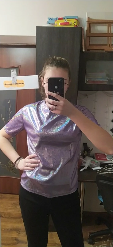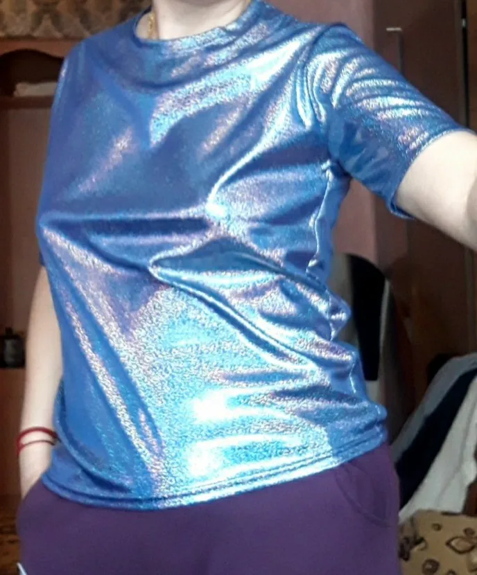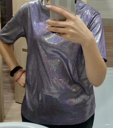 Футболкой и качеством очень довольна. Спасибо большое за быструю доставку товара. Девчонки рекомендую футболочку, она просто супер. Переливается и блестит. На весну или лето просто бомба.