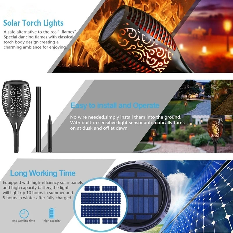 96 светодиодных ламп с мерцающим пламенем на солнечной батарее, класс защиты IP65, водонепроницаемый светильник для украшения сада, ландшафта, освещение для газона, дорожек, прожектор для двора