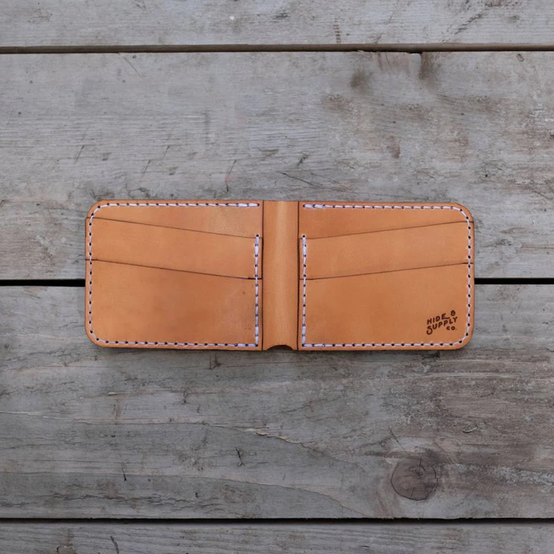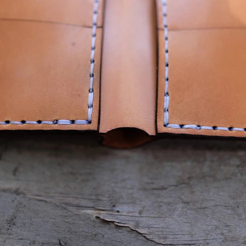 Дизайн этого шаблона делает двойной кошелек, который составляет приблизительно 4,5 дюйма х 3,25 дюйма при закрытии и имеет один большой карман для наличных денег, четыре внутренних кармана для карт и два скрытых кармана.