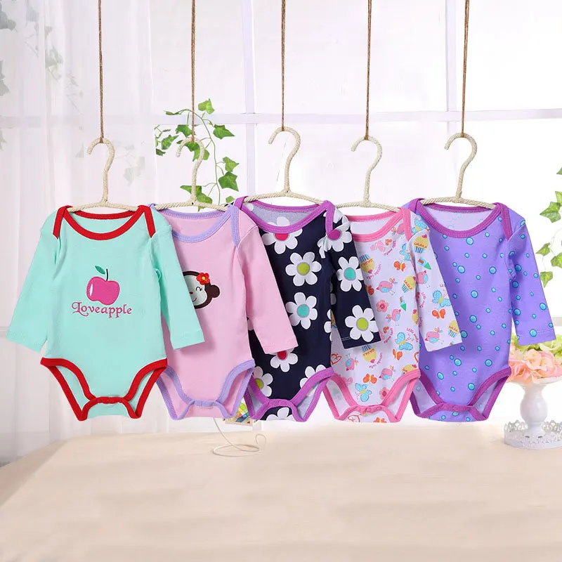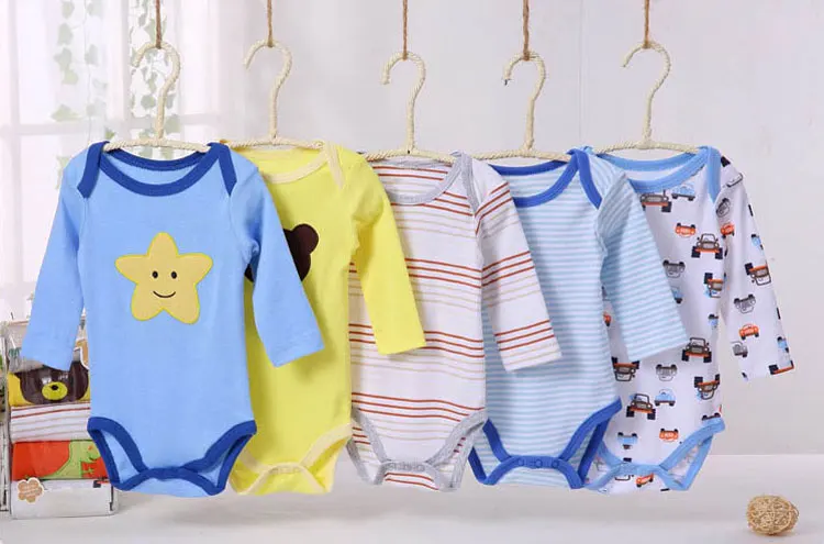 5 упаковок в случайном стиле боди для малышей с мультяшным принтом; Комбинезон для новорожденных; Хлопковый боди с длинными рукавами для маленьких девочек; Одежда для маленьких мальчиков