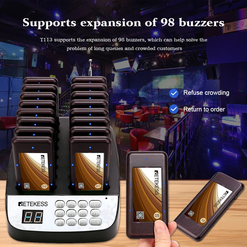 Retekess T113 ресторан Беспроводная Гостевая система подкачки очередей с 1 передатчиком + 16 зарядных пейджеров для ресторана кофе