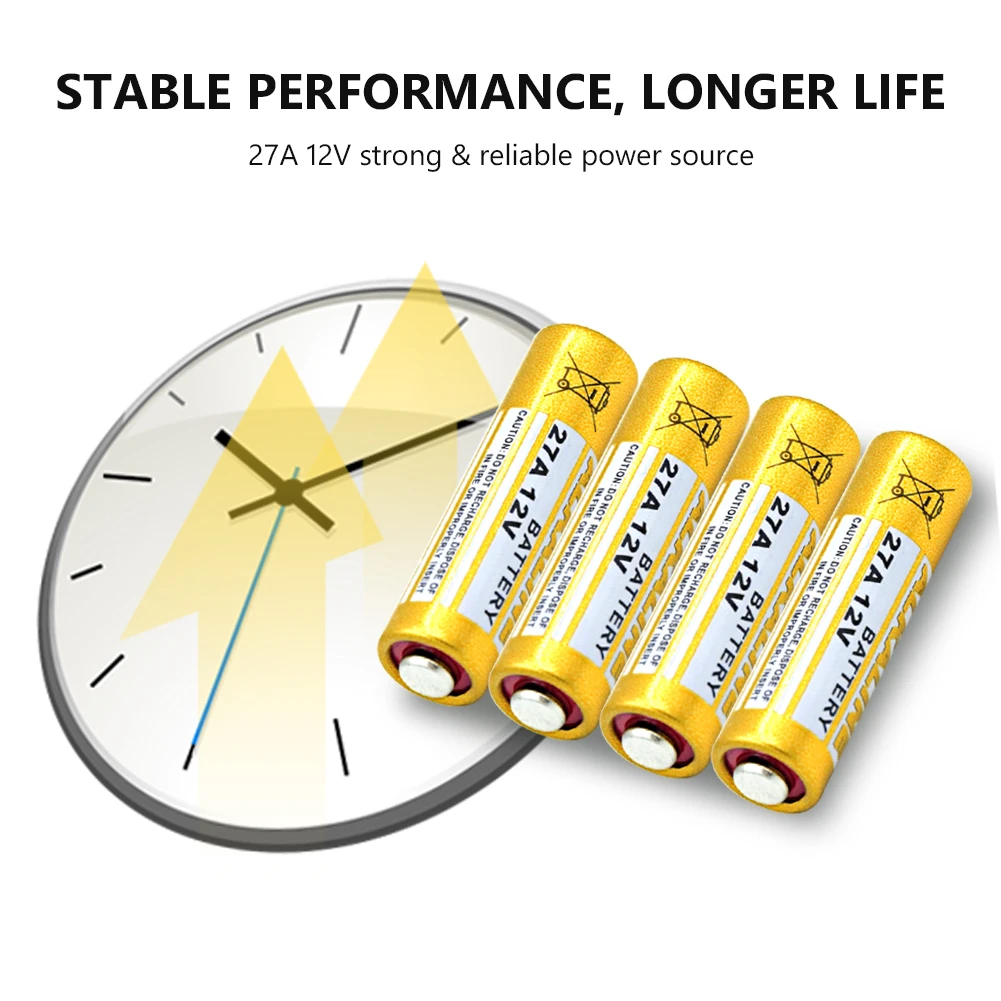 Эти миниатюрные аккумуляторы 27A обеспечивают надежную мощность ваших устройств без ключа, открывателей дверей гаража, дистанционного управления автомобилем, брелока, беспроводных дверных колокольчиков, потолочных вентиляторов, gps-трекеров, домашней системы сигнализации, устройство безопасности, воспламенитель, светодиодный фонарик, игрушка, часы, бритва, Электронный журнал, материнская плата компьютера и многое другое.