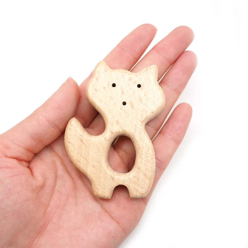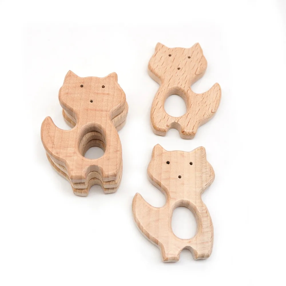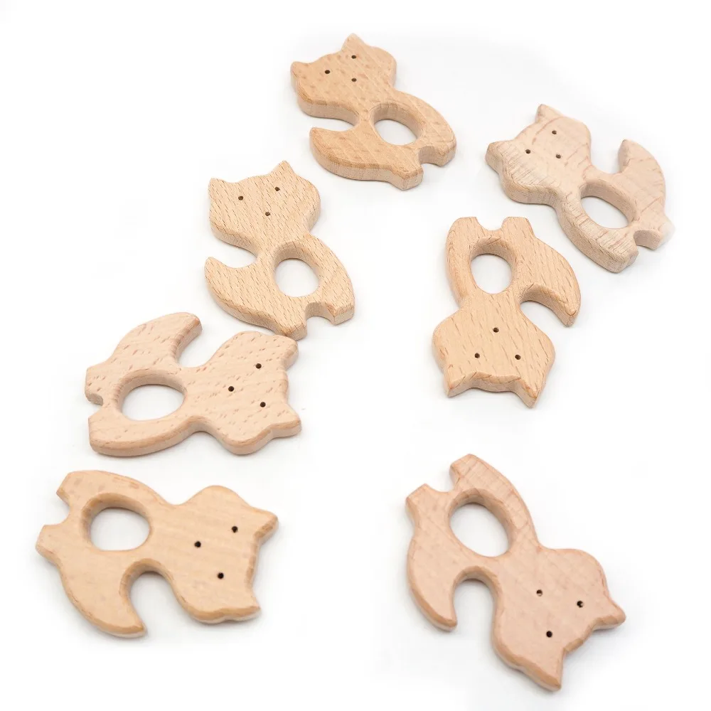 Chenkai, 10 шт., лиса, деревянный Прорезыватель для зубов, природа, детская игрушка для захвата, сделай сам, органическое, экологически чистое дерево