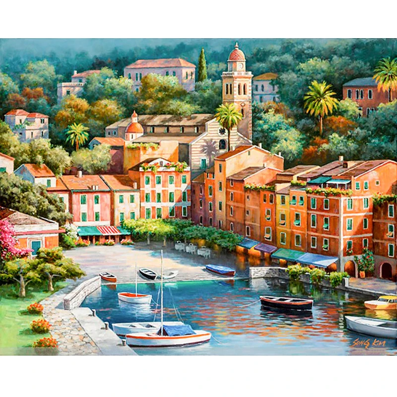 GLymg Вышивка ремесла Западный европейский город яркие Стразы Diy Алмазная вышивка 5D алмазная живопись Настенная художественная Декорация