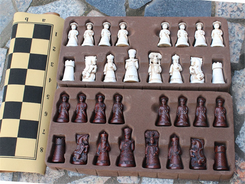 НОВЫЕ антикварные шахматы смолы большие шахматные фигуры форма кожа шахматная доска игра штук Рождество День рождения родитель-ребенок подаркиYerneaОсобенности: