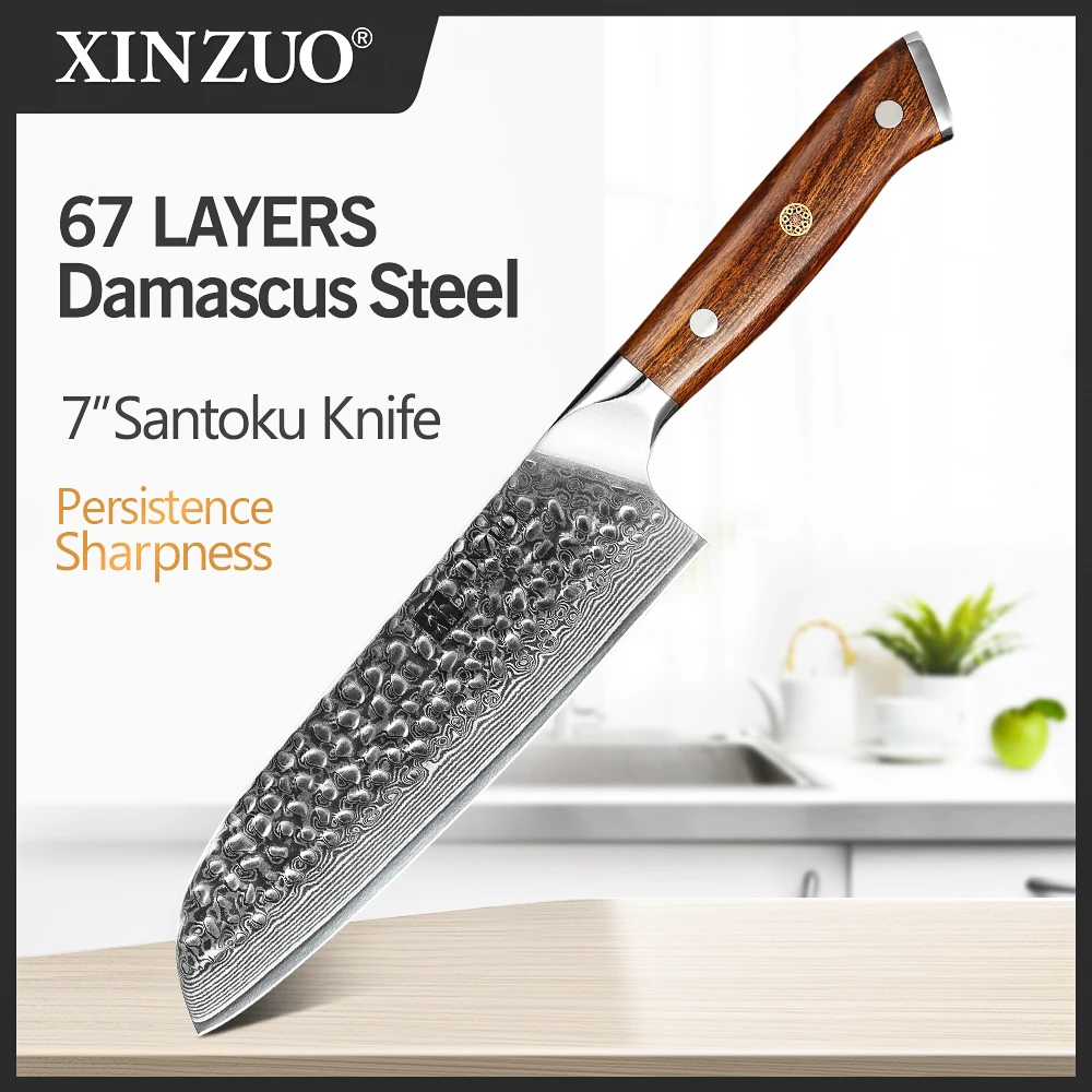 Японские ножи шеф-повара XINZUO 7 дюймов, нож сантоку из дамасской ...