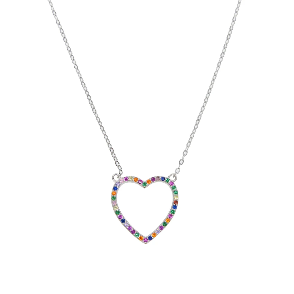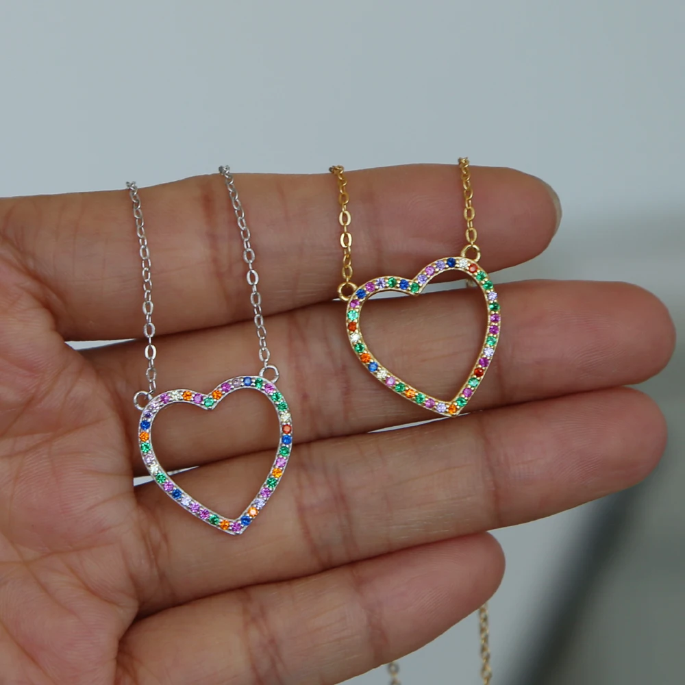 Изысканные 100% 925 пробы Серебряное ожерелье Радуга cz вымощенное сердце кулон на День святого Валентина, подарок 925 серебряное ожерелье