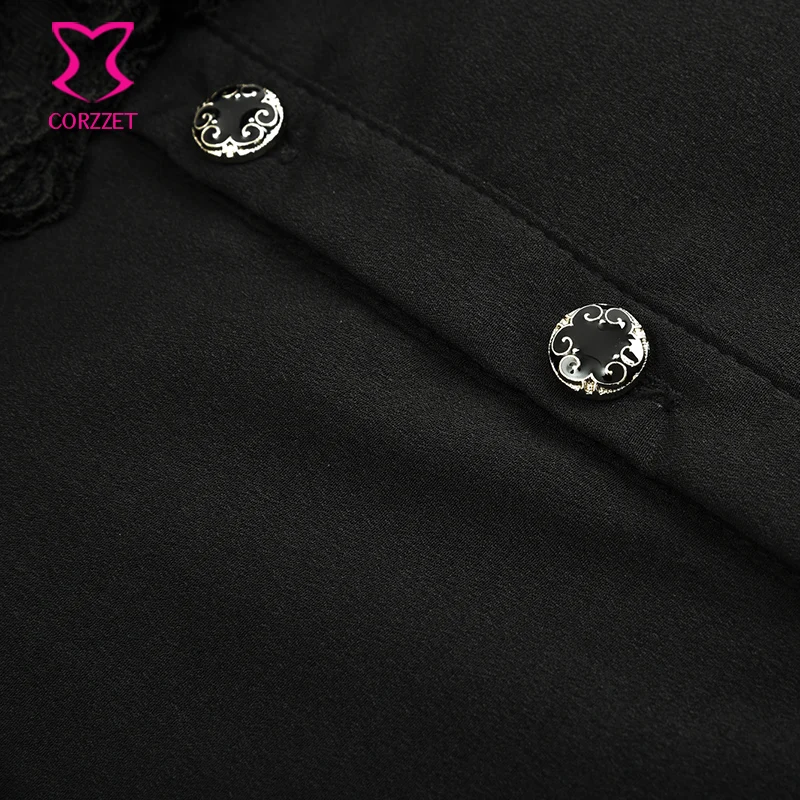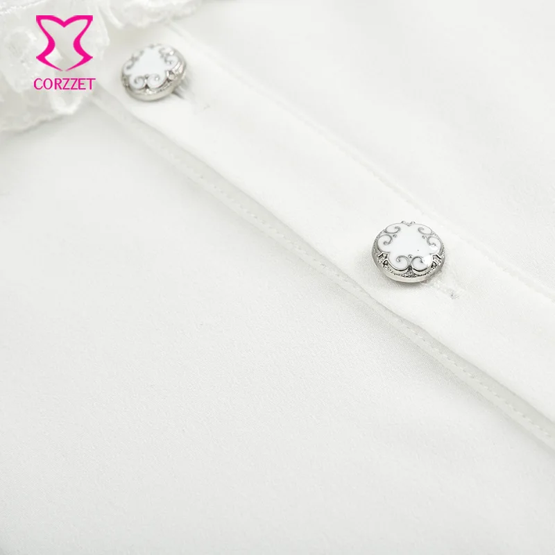 Белая кружевная рубашка в стиле стимпанк с оборками, воротником-сто...