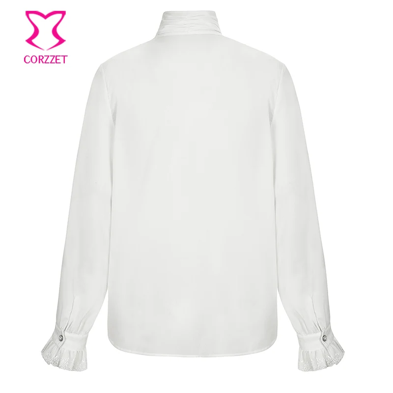 Мужская кружевная рубашка, винтажная белая рубашка в викторианском стиле с воротником-стойкой и длинными рукавами, средневековый топ в готическом стиле, стиле ренессанс 6XL, размера плюс