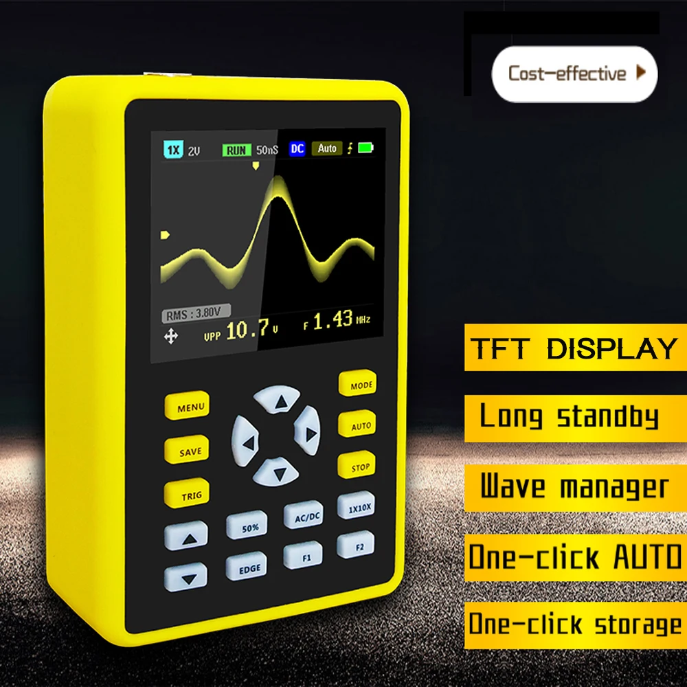 Портативный цифровой мини-осциллограф с ЖК-дисплеем 5012H 2,4 дюйма с полосой пропускания 100 МГц и частотой дискретизации 500 мкс