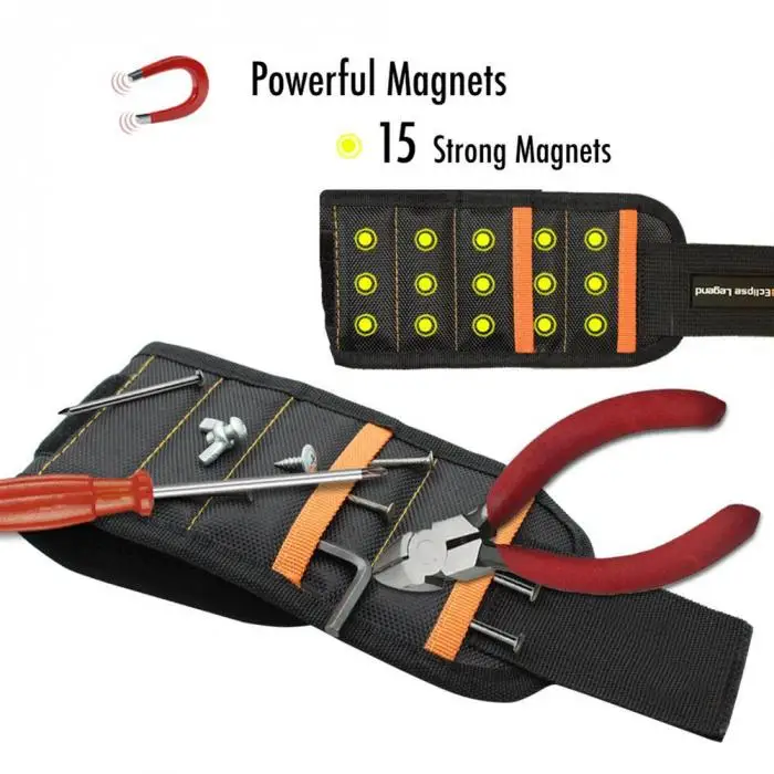 1. 10/15 шт Сильные магниты, встроенные в каждый браслет, окружают почти все запястья для удержания винтов, гвоздей, болтов, шайб, сверл.