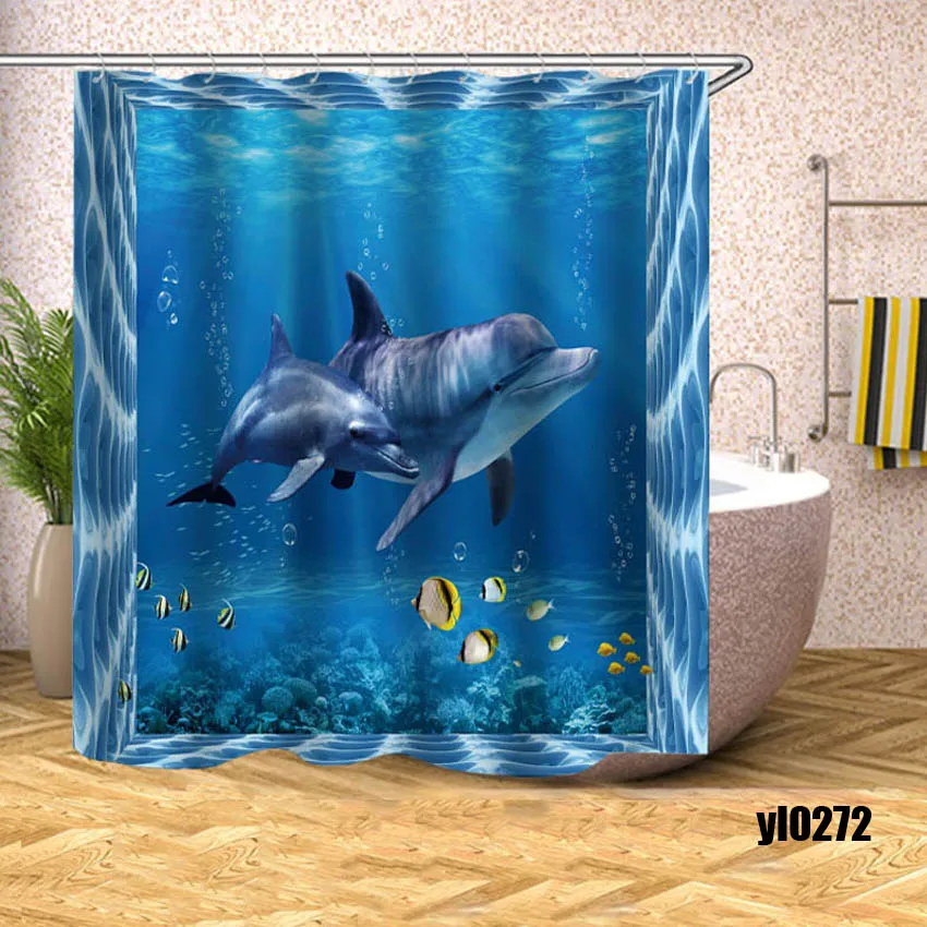 Европейская занавеска для душа с видом на море, занавеска для ванны с дельфином, водонепроницаемая занавеска для ванны, большая широкая занавеска для купания