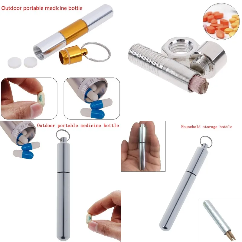 Портативный алюминиевый водонепроницаемый чехол для таблеток, уличный медицинский контейнер для таблеток, чехол для брелка, металлический водонепроницаемый контейнер